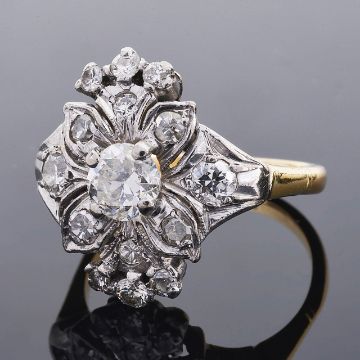 A 1940's diamond set fancy floral cluster cocktail ring