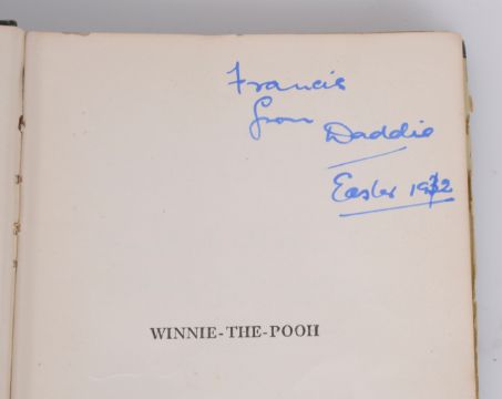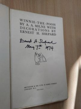 Illustrated by E.H.Shepard. Dark green picture cloth/gilt, buff dust cover, together with a 9th edition copy of Winnie the Pooh, 1929, the inside signed in felt-tip 'E.H. Shepard, dated May 7th 1974' (2)