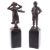 signed to base H. Focking, the girl in a standing pose holding on to her hat whilst holding a trug, the boy also standing with boys in his pockets, on black marble base, (2)