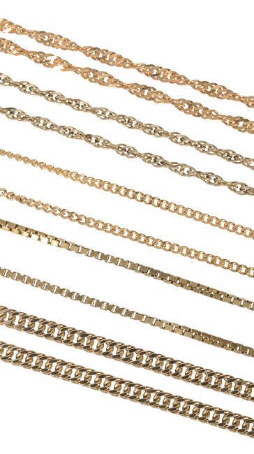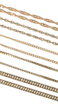 the longest 9ct 32cm, total weight 9ct chains 16g, the 18ct length 25cm total weight 18ct 7g