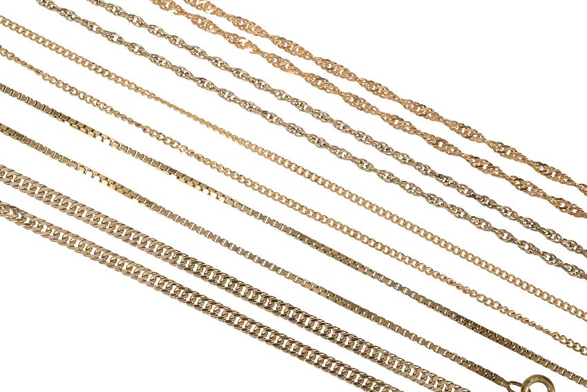 Four thin 9ct gold chains and one 18ct gold chain