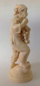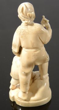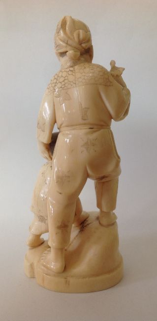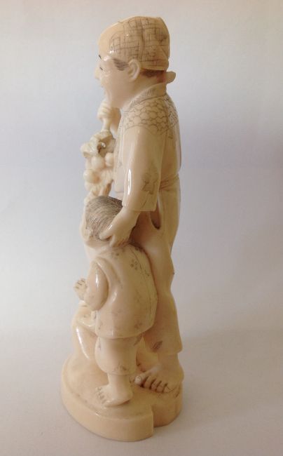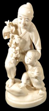 A late 19th century Japanese Meji period ivory Okimono of a father and boy