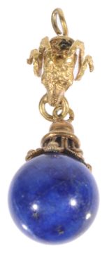 A small Etruscan style ram's head lapis drop pendant