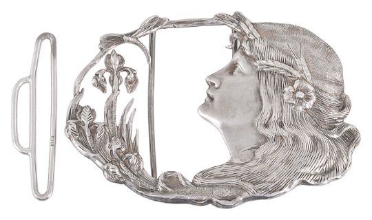 An Edwardian silver Art Nouveau belt buckle by Arthur Johnson Smith