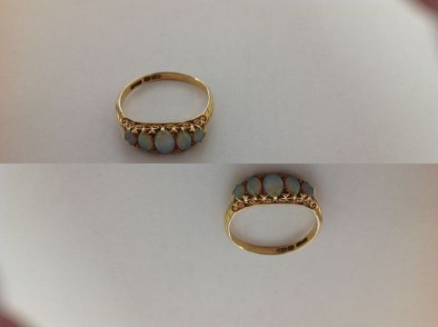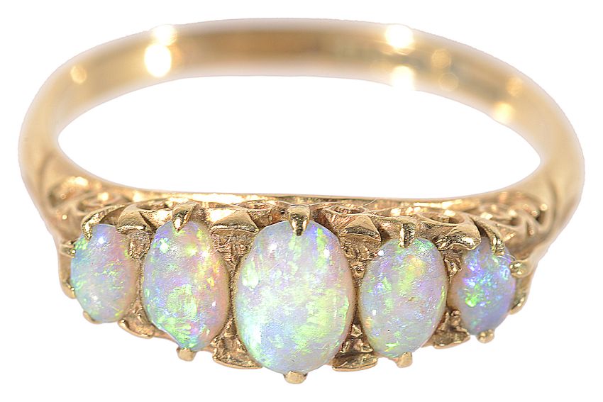 A delicate 19th century 18ct gold five stone opal ring