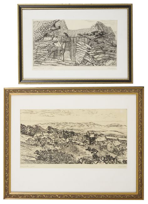 two framed etchings 'Derelict Farmyard Eynsford' and 'Llangennith Gower', each signed and titled in pencil on lower margin;