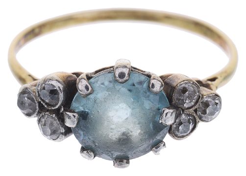 An attractive 1920s blue zircon and diamond ring