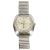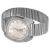 the circular dial with baton hours, date aperture, quartz movement, in a stainless steel case, with an associated silvered link expandable bracelet, with extra links.