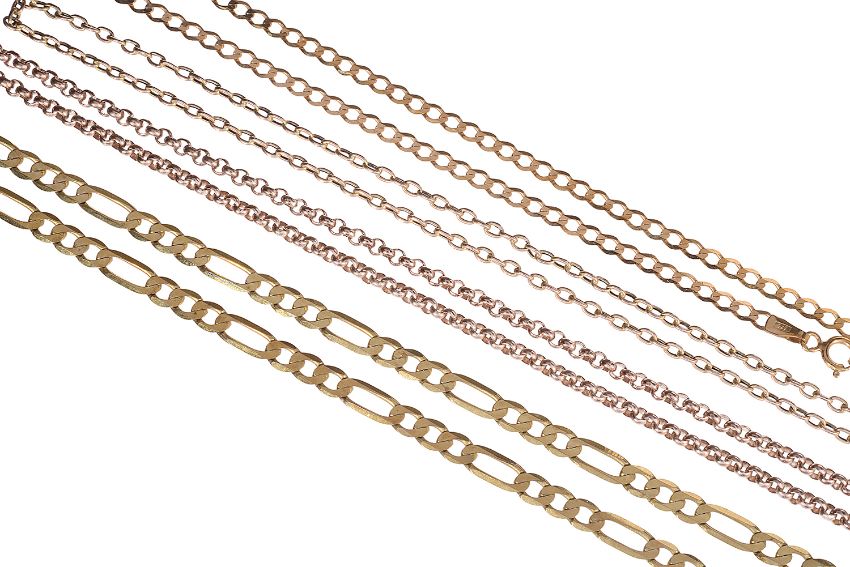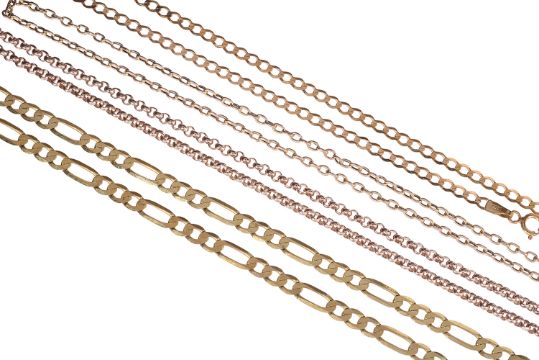 Four 9ct gold chains