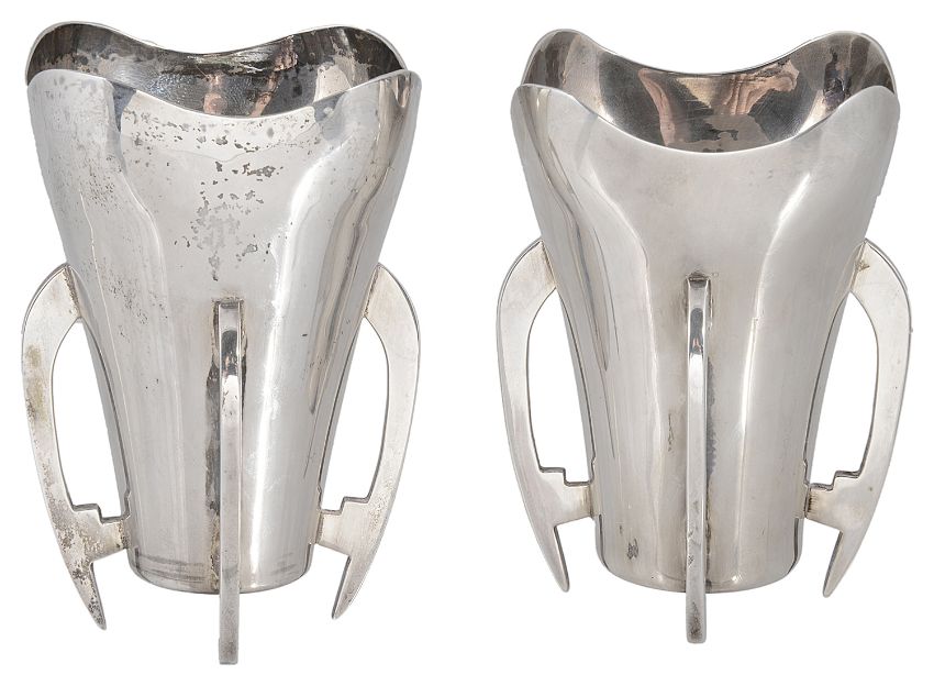 A matched pair of Irish silver mether cups, hallmarked Dublin 1930 & 1935 by West & Co and Alwright & Marshall