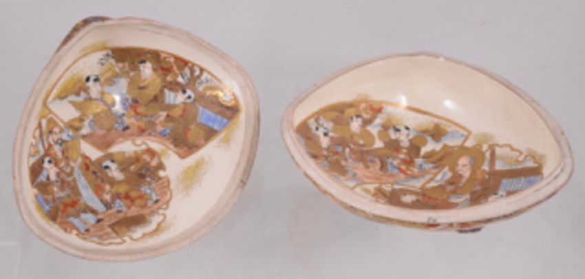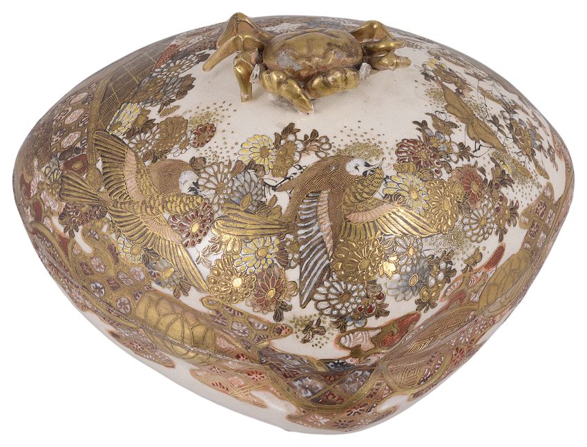 A Japanese Satsuma box and cover modelled as a clam