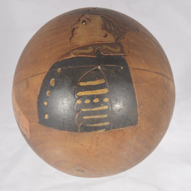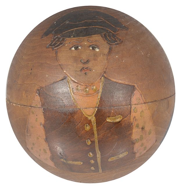 A hand decorated Russian (?) wooden ball, mid 20th century