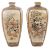 the tapered vases, both typically embellished with gilt stylised flower patterns, and panels to the side painted with figures and foliage on cream ground, with painted marks to the underside, a/f, (2).