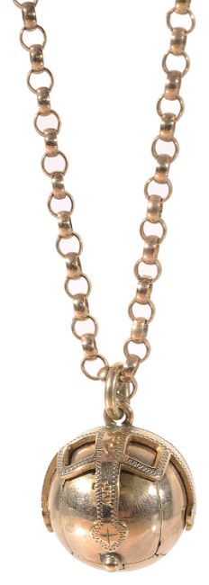 opening to reveal a cross, on a belcher chain (unmarked), the orb marked Made in England
