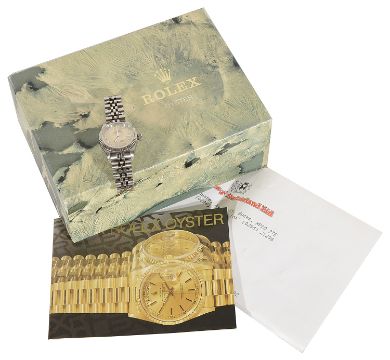 the cream dial with roman hours and date apperature, automatic movement, link bracelet with clasp, case numbered E149930 / 69174, with Rolex box and papers.