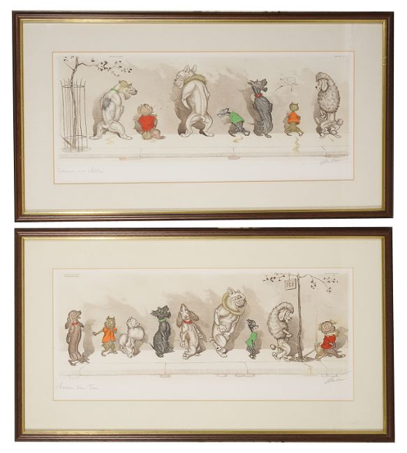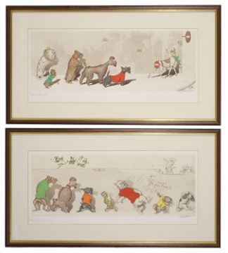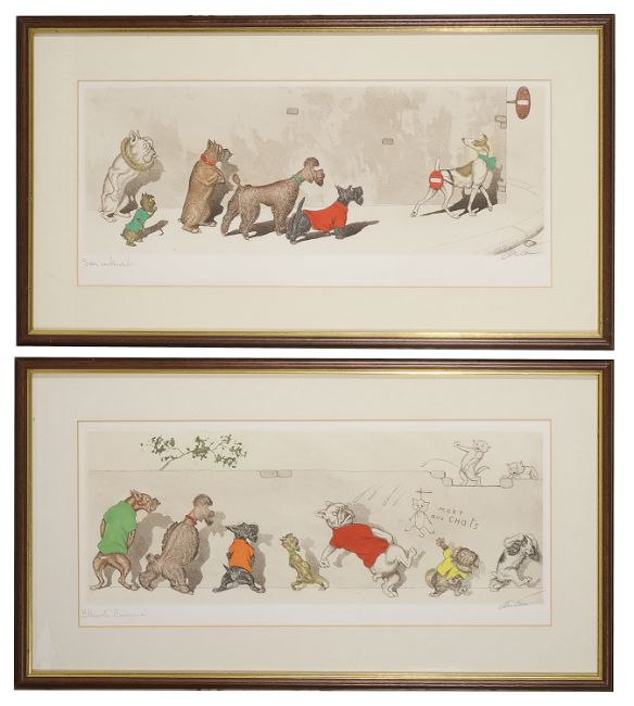 four 'Dirty Dogs of Paris' humorous prints, signed in pencil, framed, (4).
