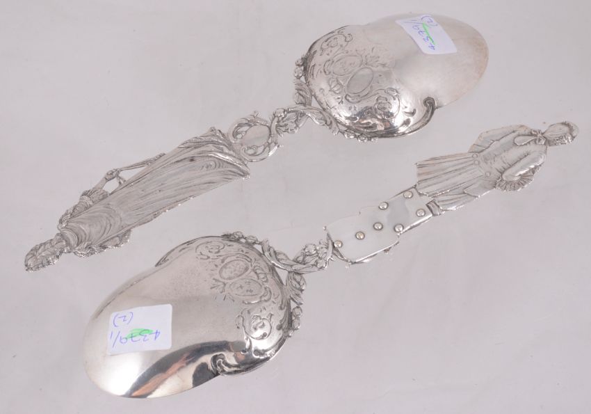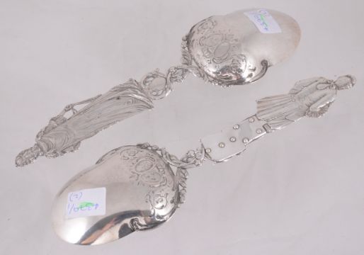King Louis XVI & Marie Antoinette silver serving spoons, 19th century