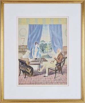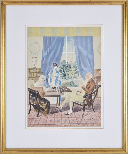 together with original artwork by Leslie Wood (British 1920 - 1994) for the dust cover of 'Unbroken Thread' by Viscount Templewood, published by Collins circa 1949, signed lower right, framed, label verso, from the archive of Smilby, Francis Wilford-Smith (British 1927 - 2009), (2).