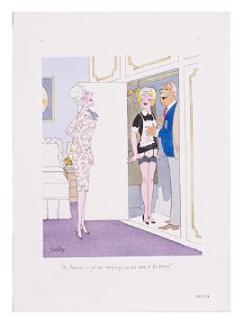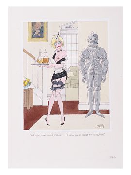 cartoon artwork, pen and ink with watercolour, on Daler board, signed lower right, captioned, artists note MD31 lower margin, with dust cover sheet, Smilby yellow dot verso, (3).