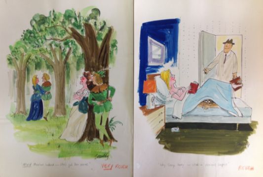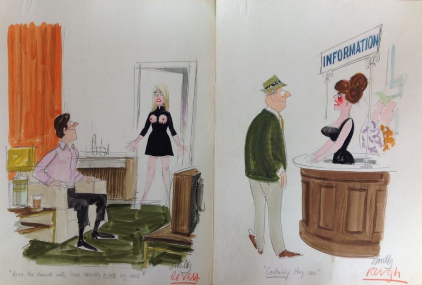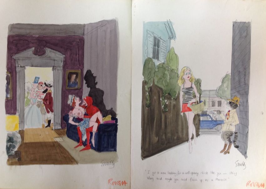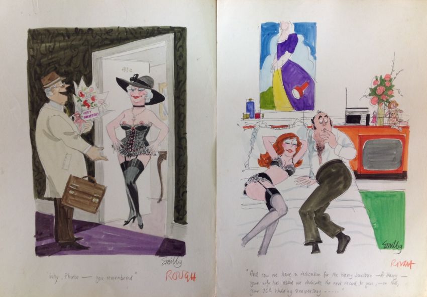 a mixed collection ink, pen and watercolour original artists rough drawing and sketches for various magazines, including Punch, Playboy, each on artists paper, some signed Smilby with captions, artists notes in margins, (qty).