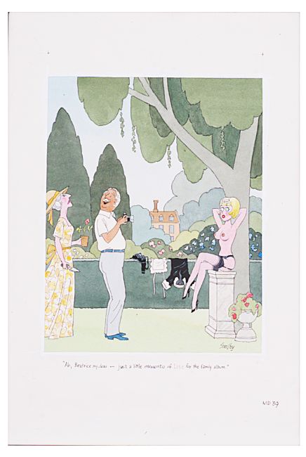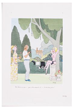 cartoon artwork, pen and ink with watercolour, on Daler board, signed lower right, captioned, artists note MD40 lower margin, with dust cover sheet, Smilby yellow dot verso, (3).