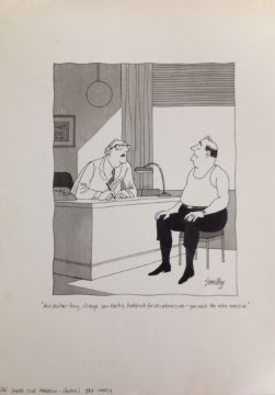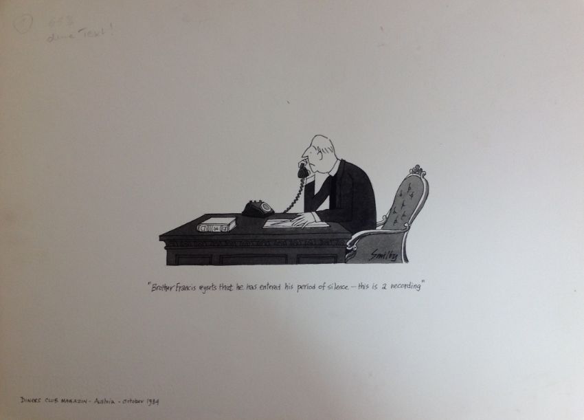 cartoon artwork for Diners Club Austria Mar 1984, pen and ink, on artists paper, signed lower right, caption below, total paper: 386 x 279mm; together with artists rough artworks for similar Diners Club cartoons, (36).