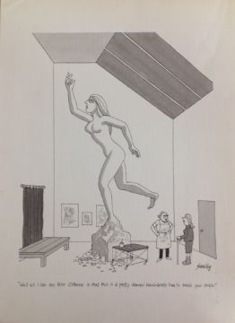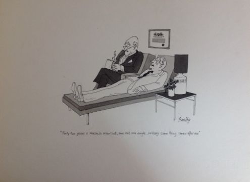 cartoon artwork for Diners Club Austria Nov 1984, pen and ink, on artists paper, signed lower right, caption below, artists notes in margin, total paper: 384 x 284mm;