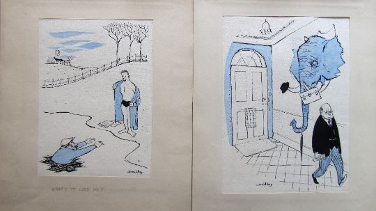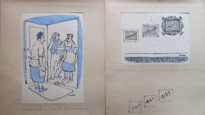 ten original cartoon artworks Punch magazine, ink, pen and watercolour on artists paper, each in a paper mount, some with pencil captions on outer mount, each signed 'Smilby', (10).