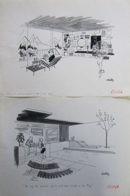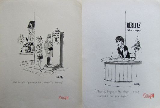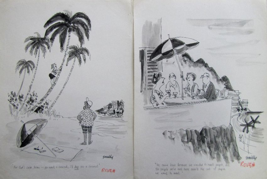 a collection ink and pen 'Holiday' themed original artists rough drawing s and sketches for various magazines, including Punch, Playboy, each on artists paper, some signed Smilby with captions, artists notes in margins, (qty).