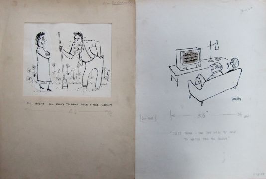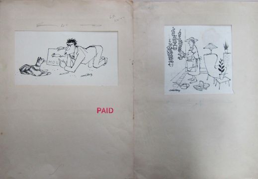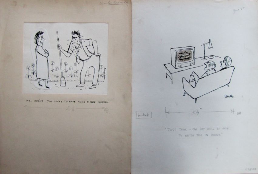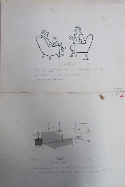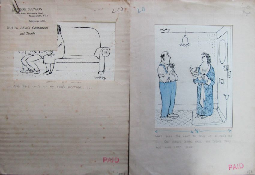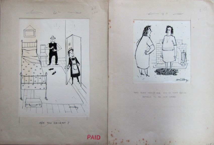 a collection ink and pen 'Home & Household' themed original artists rough drawings and sketches for various magazines, including Punch, Playboy, each on artists paper, some signed Smilby with captions, artists notes in margins, (qty).