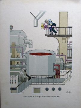 unpublished cartoon artwork for Playboy Germany, drawn: Jan 1983, pen and ink with watercolour, on Daler board, signed lower right, caption below, with dust sheet.
