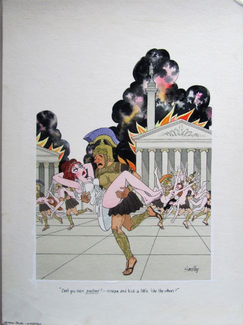 cartoon artwork for Playboy Germany, drawn: Jan 1978, pen and ink with watercolour, on Saunders board, signed right, caption below, artists notes in margin, Smilby yellow dot verso, with dust sheet.