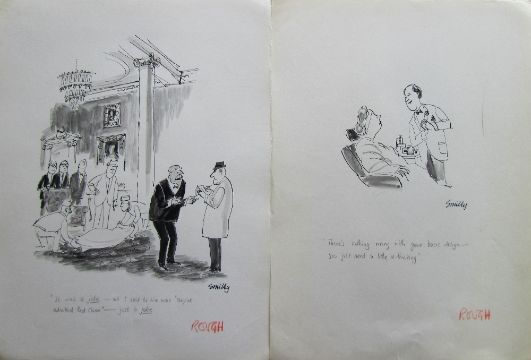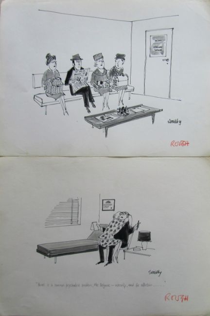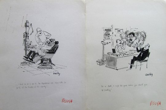 a collection ink and pen 'Medically' themed original artists rough drawings and sketches for various magazines, including Punch, Playboy, each on artists paper, some signed Smilby with captions, artists notes in margins, (qty).