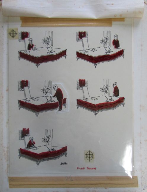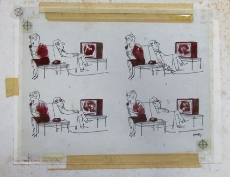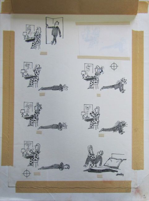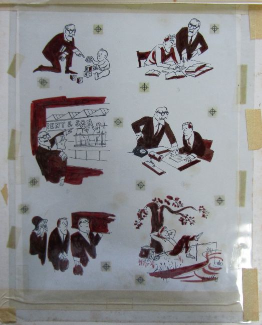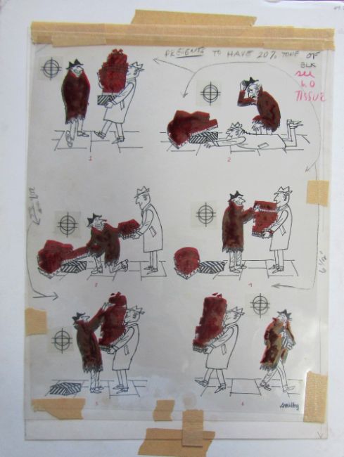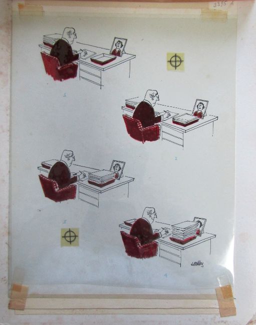 thirteen ink and pen 'Series' original artists drawings and sketches for various magazines, including Punch, Playboy, each on artists paper laid on artists board, signed Smilby, artists notes in margins, some with coloured cellophane dust sheets, (13).