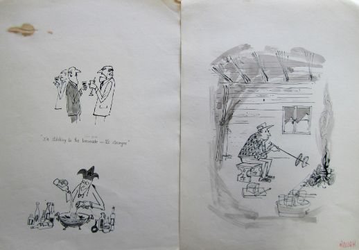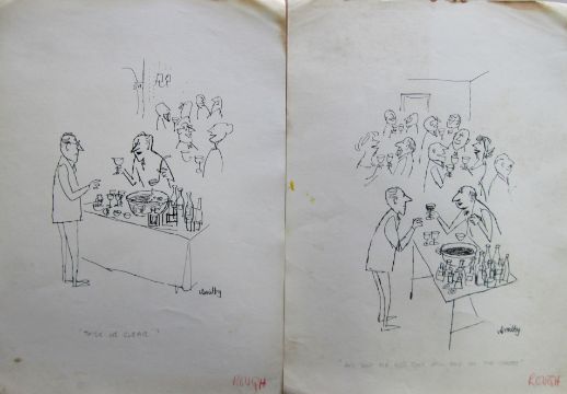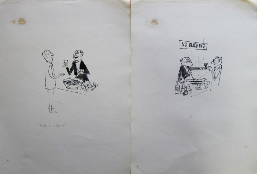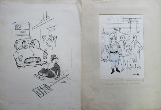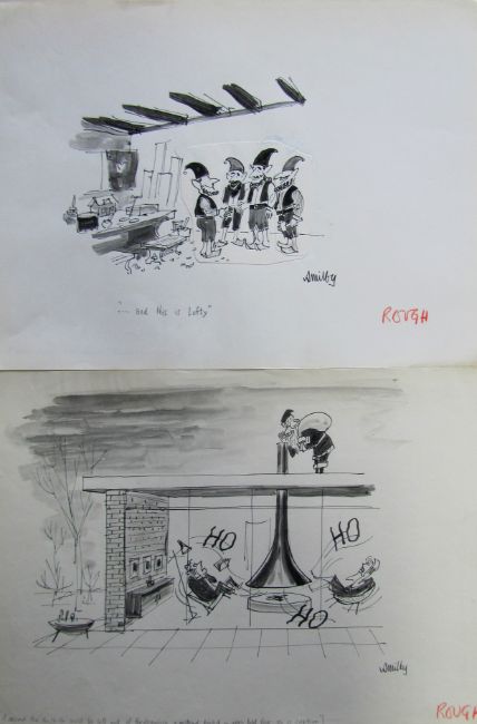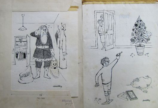 a collection ink and pen 'Snow, Christmas' themed original artists rough drawings and sketches for various magazines, including Punch, Playboy, each on artists paper, some signed Smilby with captions, artists notes in margins, (qty).