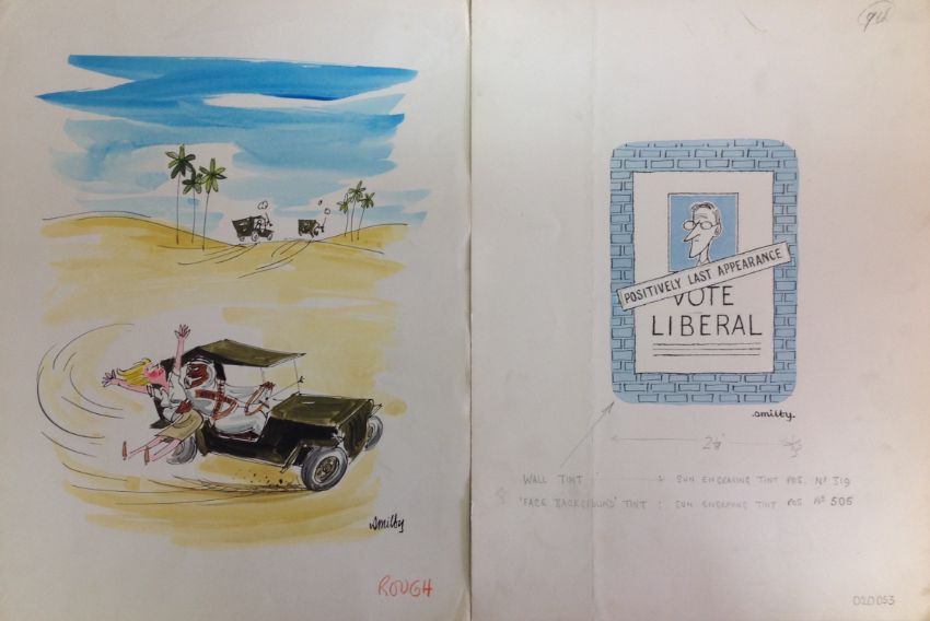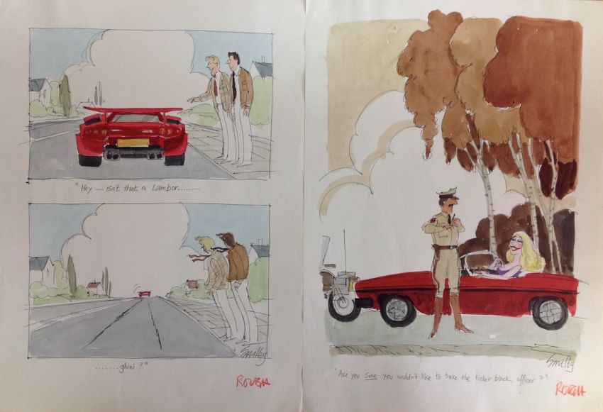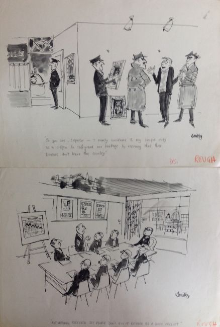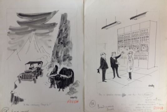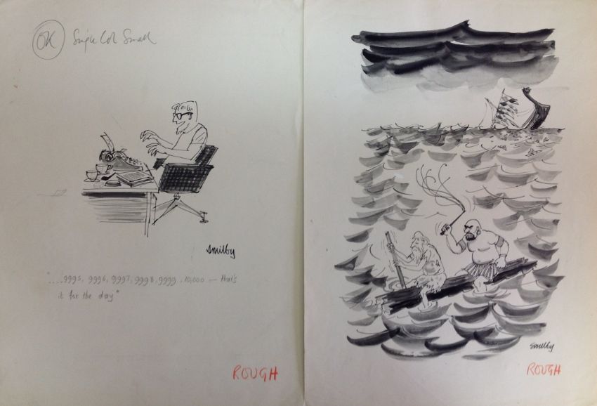 a mixed collection ink, pen and watercolour original artists rough drawing and sketches for various magazines, including Punch, Playboy, Diners Club each on artists paper, some signed Smilby with captions, artists notes in margins, (qty).