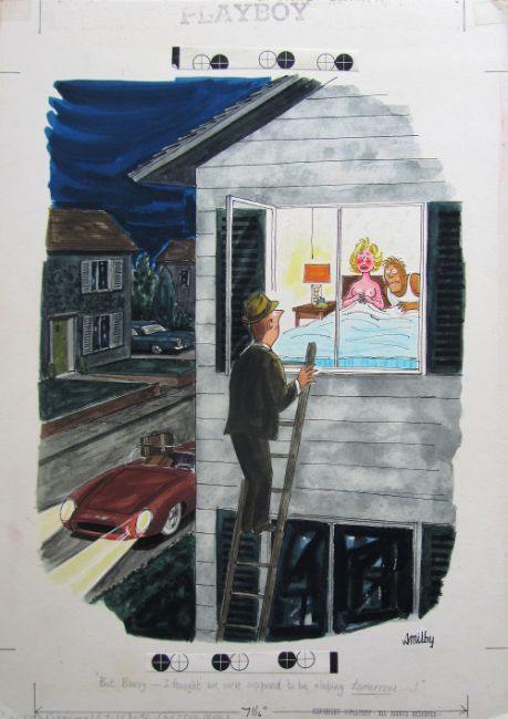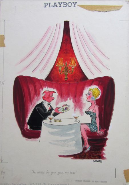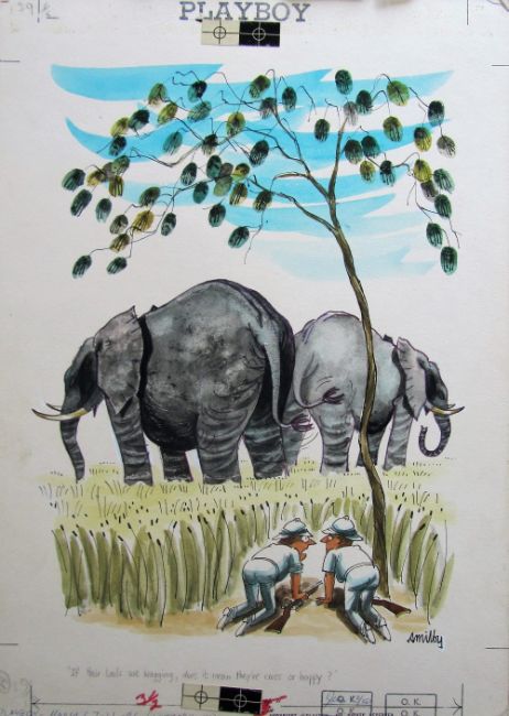 ten cartoon artworks for Playboy, drawn: 1966/67, pen and ink with watercolour, on Whatman board, signed, majority with captions below, artists notes in margin, Copyright Playboy All Rights Reserved stamp & Playboy Publications Inc Reproduction Prohibited Without Permission upper & lower margins & verso, Smilby yellow dot verso, some with dust sheets, (10).