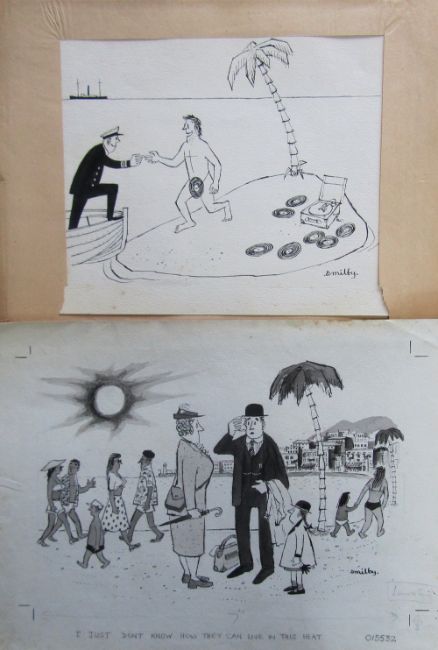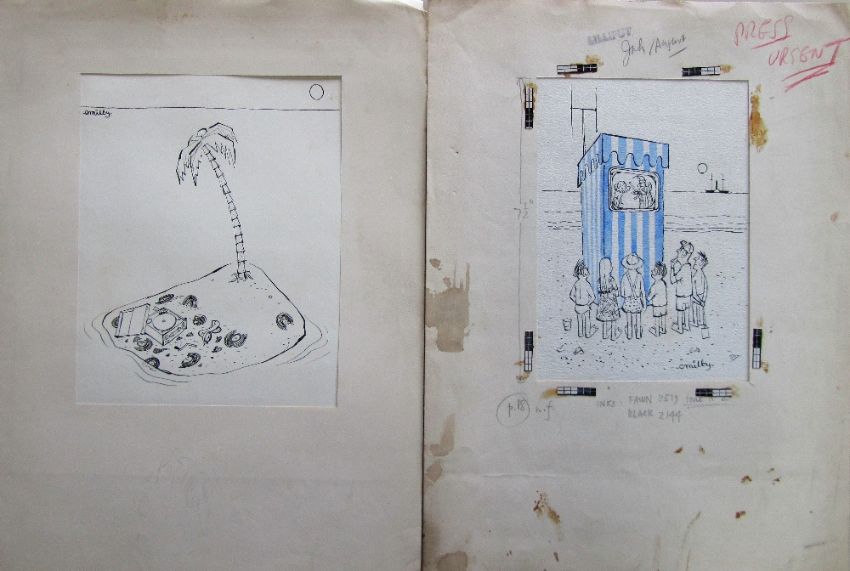 a collection ink and pen 'Sea, Beach, Sailing' themed original artists rough drawings and sketches for various magazines, including Punch, Playboy, each on artists paper, some signed Smilby with captions, artists notes in margins, (qty).