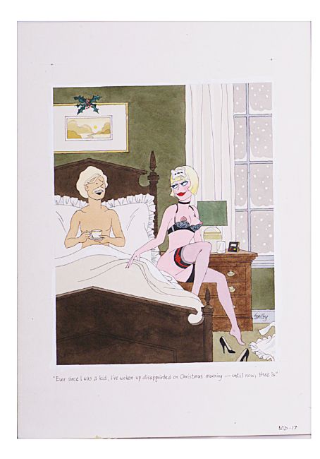 cartoon artwork, pen and ink with watercolour, on Daler board, signed lower right, captioned, artists note MD17 lower margin, with dust cover sheet, Smilby yellow dot verso;