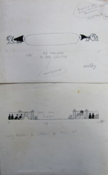 a collection ink and pen collages of miscellaneous themed original artists rough drawings and sketches for various magazines, including Punch, Playboy, each on artists paper, some signed Smilby with captions, artists notes in margins, (qty).