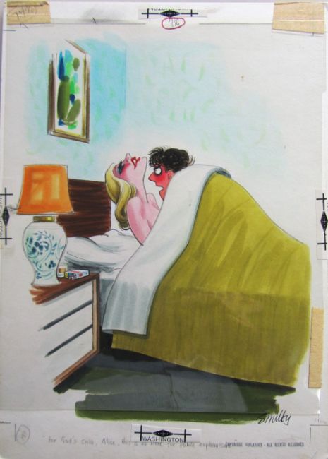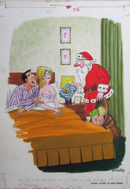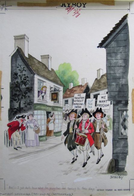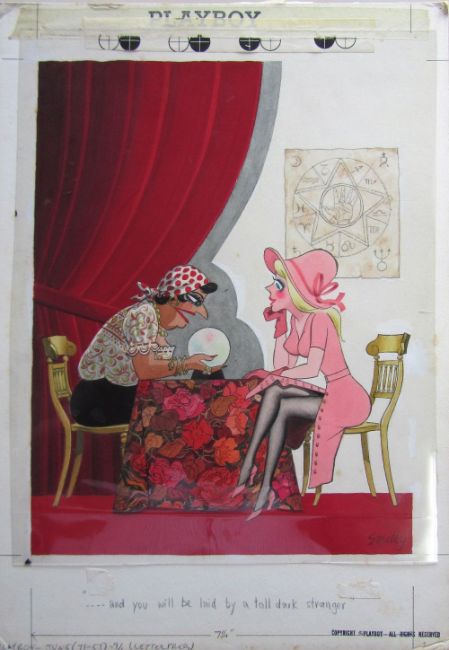 ten cartoon artworks for Playboy, drawn: 1964/66/69/70/82, pen and ink with watercolour, on Whatman, CS2 & Daler board, signed, majority with captions below, artists notes in margin, Copyright Playboy All Rights Reserved stamp & Playboy Publications Inc Reproduction Prohibited Without Permission upper & lower margins & verso, Smilby yellow dot verso, some with dust/cellophane sheets, (10).