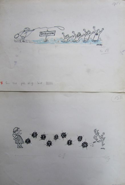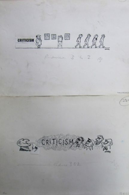 a collection ink and pen 'Retail Therapy' themed original artists rough drawings and sketches for various magazines, including Punch, Playboy, each on artists paper, some signed Smilby with captions, artists notes in margins, (qty).
