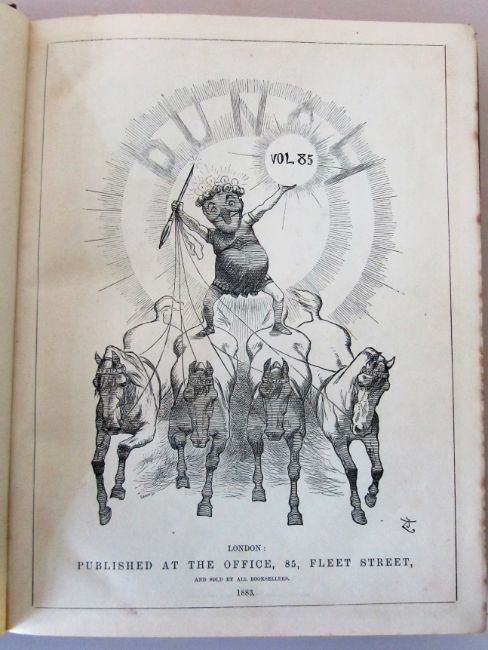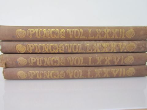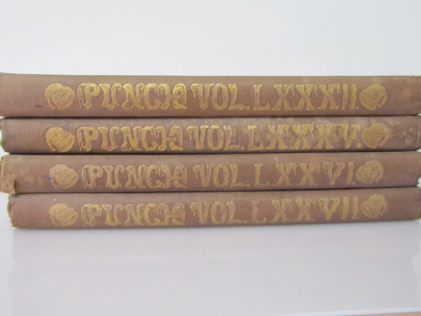 covering the years from 1879 to 1883, each volume in a hardcover with gilt lettering on the spine and Punch emblem on the cover, volume numbers: LXXVI, LXXVII, LXXXII, LXXXV, a/f, (4).