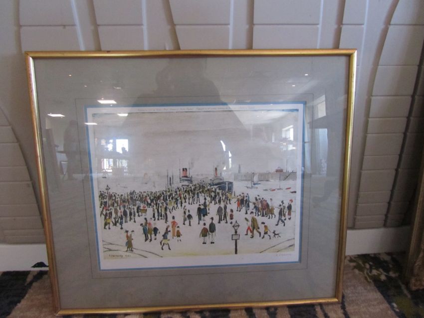 "Ferry Boats" print, signed in pencil lower right, with impressed blind stamp Fine Art Trade Guild ABL, published by Venture Prints Ltd dated 1972 on upper margin and lower right, mounted and in a gilt wooden frame.