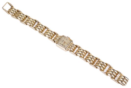 the square dial with arabic and dot hours, in a square case with a link bracelet and clasp, case no. 118194.