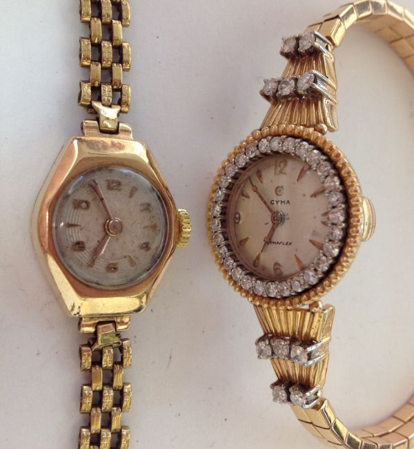 Cyma total weight: 37gms approx; length: 17.5cm; case diameter: 23mm; dial diameter: 20mm approx. Leda total weight: 13gms approx; case diameter: 17mm; dial diameter: 13mm approx.