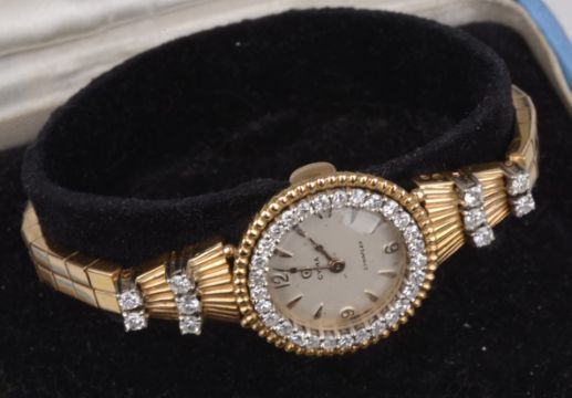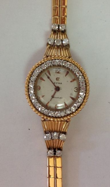 A 18k gold Cyma ladies wristwatch with diamond bezel