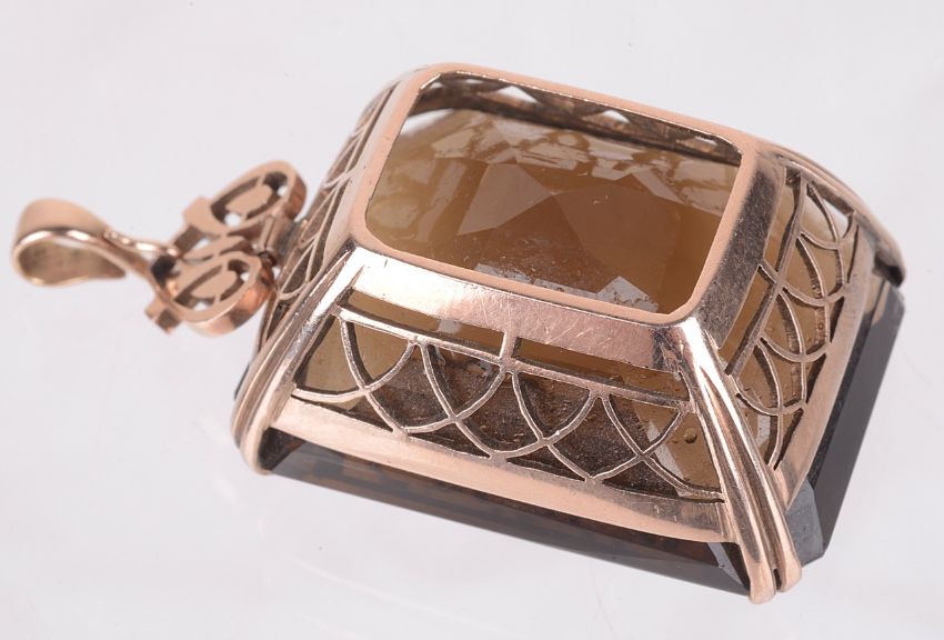 A very large Continental rectangular cut smoky quartz pendant
