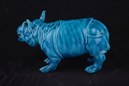 A Royal Worcester turquoise majolica glazed model of a standing Rhinoceros, circa 1880