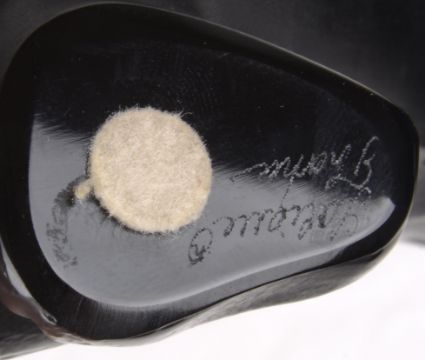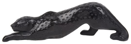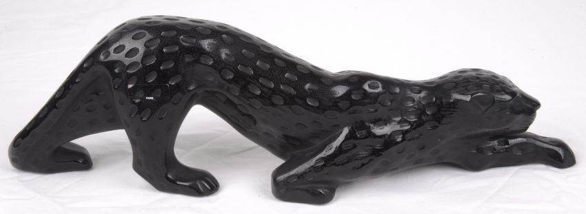 in the form of panther stalking its prey, etched mark under the right front paw, with label on body.
